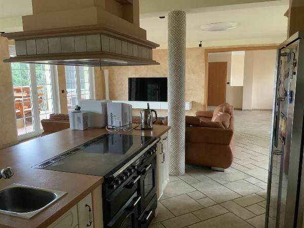 Mehrere Seiten würden nicht ausreichen um die umfangreiche und hochwertige Ausstattung aufzuzählen, z.B. moderne "autarke" Energieversorgung, Autoabstellplatz, Doppelgarage, offene Designküche mit Kücheninsel, Speisezimmer, offenes Wohnzimmer mit TV-Mediaanlage, Klimaanlage, Alarmanlage, Pelletsheizung und Wärmetauscher, mehrere Bäder und WC, Gästezimmer, Schlafzimmer, begehbare Garderoben, große Terrasse mit Grillplatz, großzügiger Keller mit Nebenräumen, Hauswirtschaftsraum, Poolvorbereitung, ...